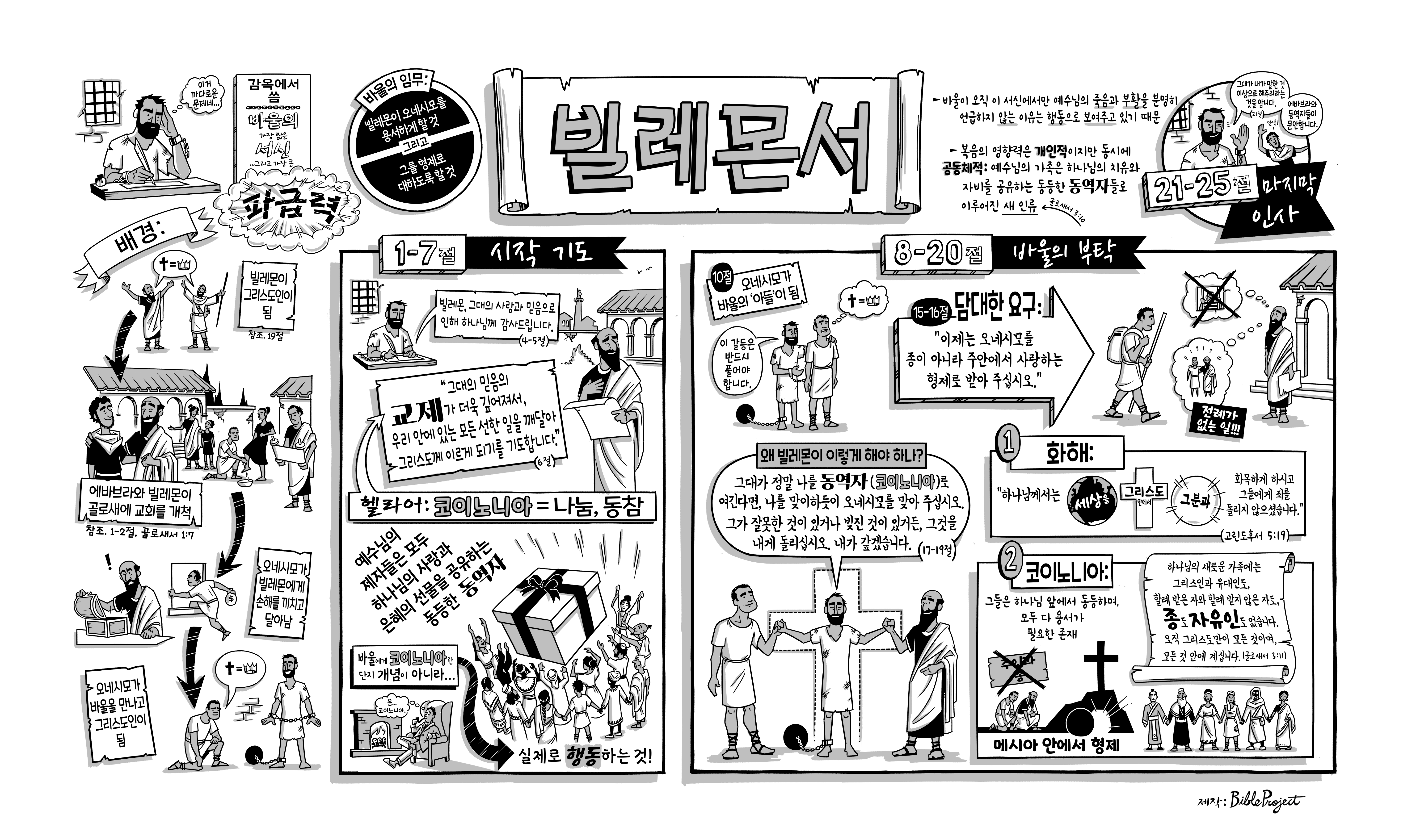 배경: 바울은 감옥에서 빌레몬(골로새의 부유한 신자, 가정교회 리더)에게 편지를 씁니다. 그의 종 오네시모가 손해를 끼치고 도망쳤다가 바울을 만나 회심, 옥중에서 바울을 섬기게 됨.